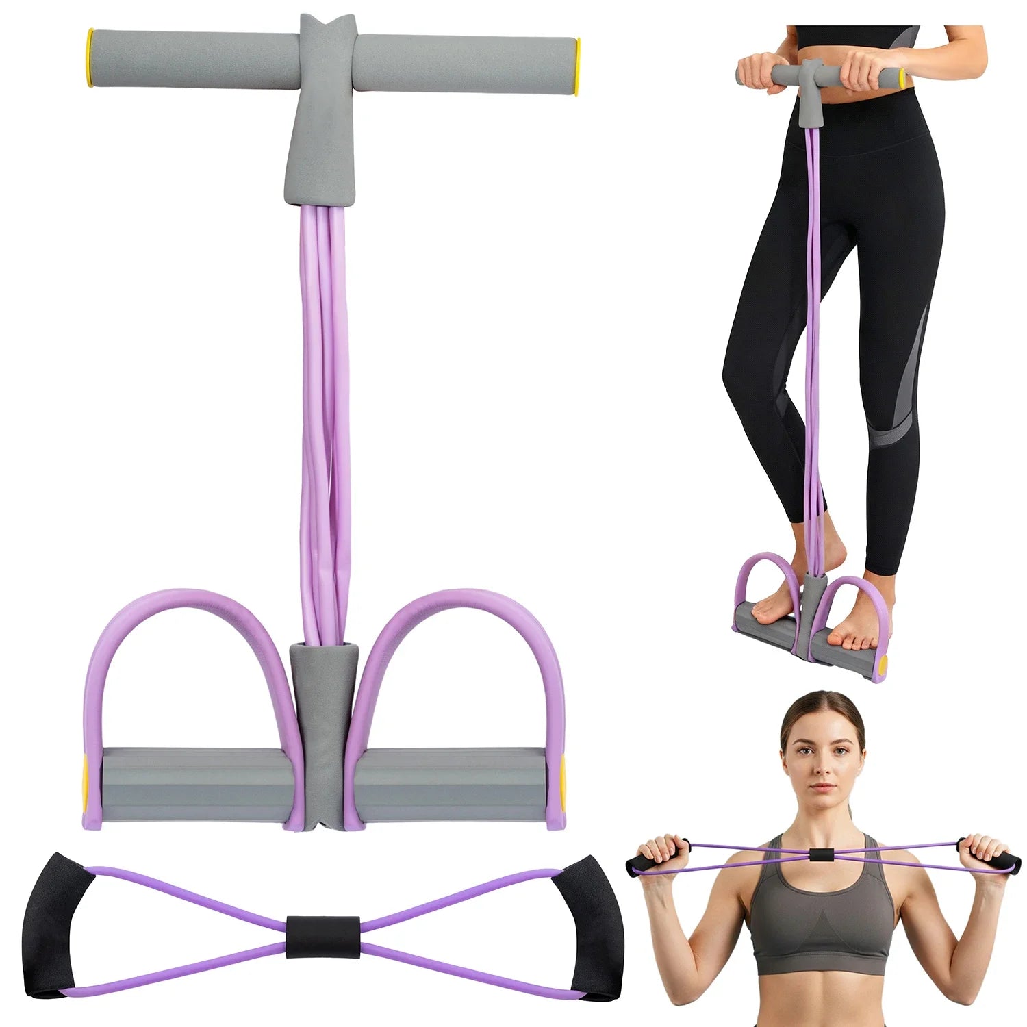 Yoga Pedal Puller Portable Resistance Band 4-Tube Pedal Ankle Puller Abdominal Exerciser Elastic Pedal Booster Body