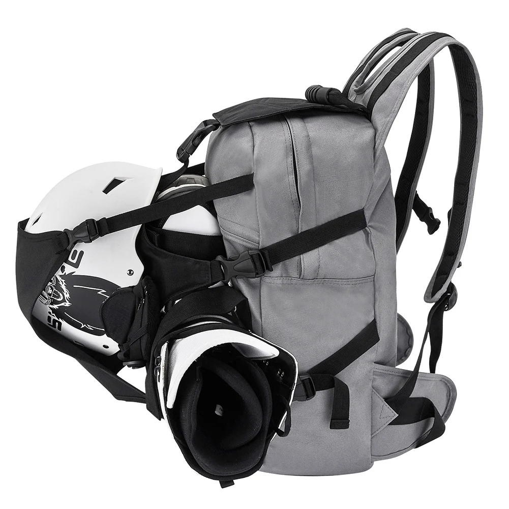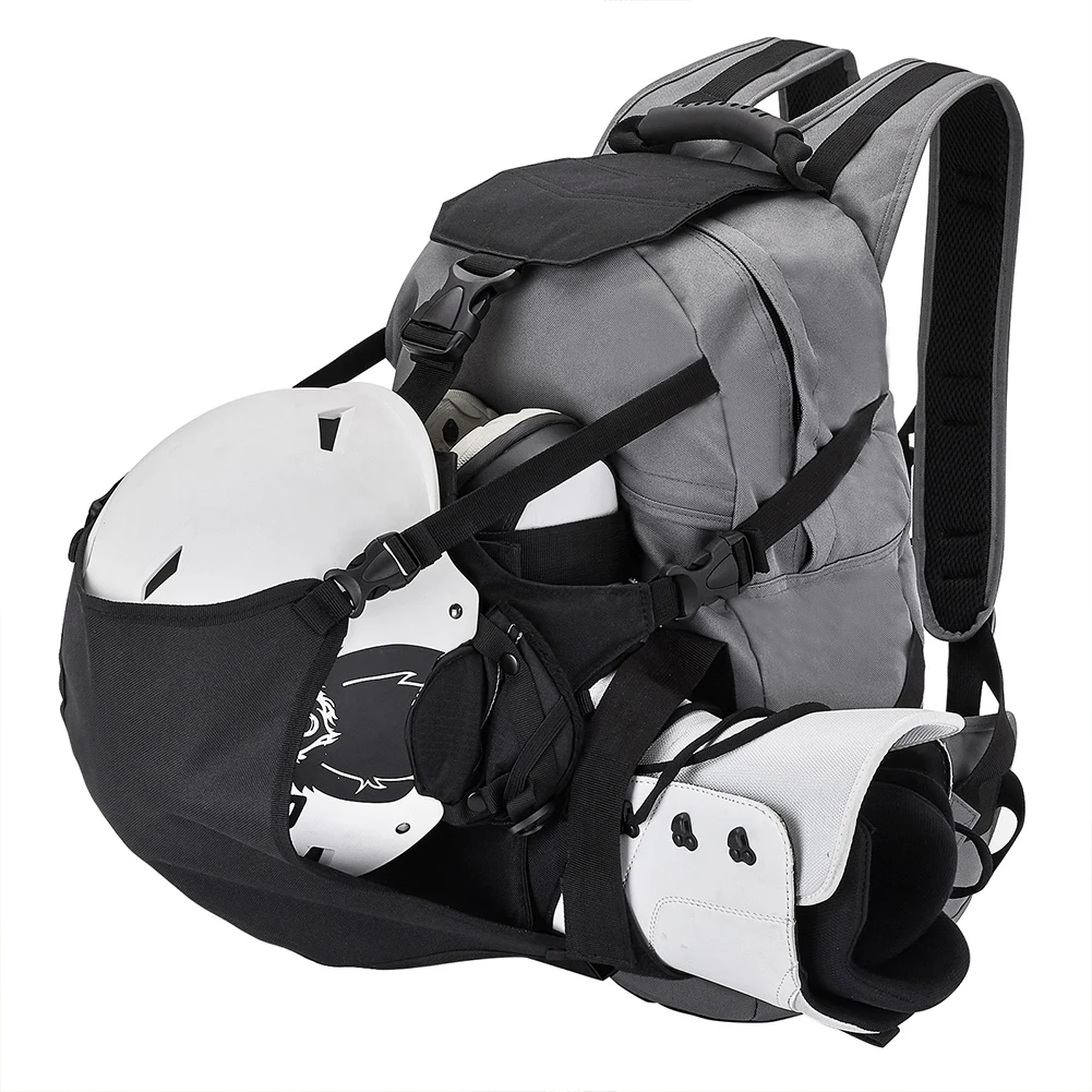 30L Outdoor Skating Backpack with Adjustable Fastening Straps Ski Boot Helmet Bag for Ski Boots Helmet Snowboard Protective Gear Features: 1. Spacious Storage: This 30L ski boot backpack features a dedicated helmet compartment and ample space for ski boots and accessories, ensuring everything stays organized and easily accessible. 2. Sturdy Protection: Crafted from Oxford fabric, this outdoor skating backpack offers excellent abrasion resistance and waterproof protection, keeping your gear safe from the elements. 3. Comfortable Transport: Equipped with padded handles and adjustable shoulder straps, this ski boot helmet bag ensures maximum comfort whether you carry it by hand or on your back during transport. 4. Convenient Access: Thoughtfully designed side pockets of this ski storage backpack provide quick access to essentials like your phone and keys, enhancing your convenience on the go. 5. Ideal for Enthusiasts: for ski lovers, this ski travel bag is a reliable companion on the slopes and makes an excellent gift choice for outdoor enthusiasts.