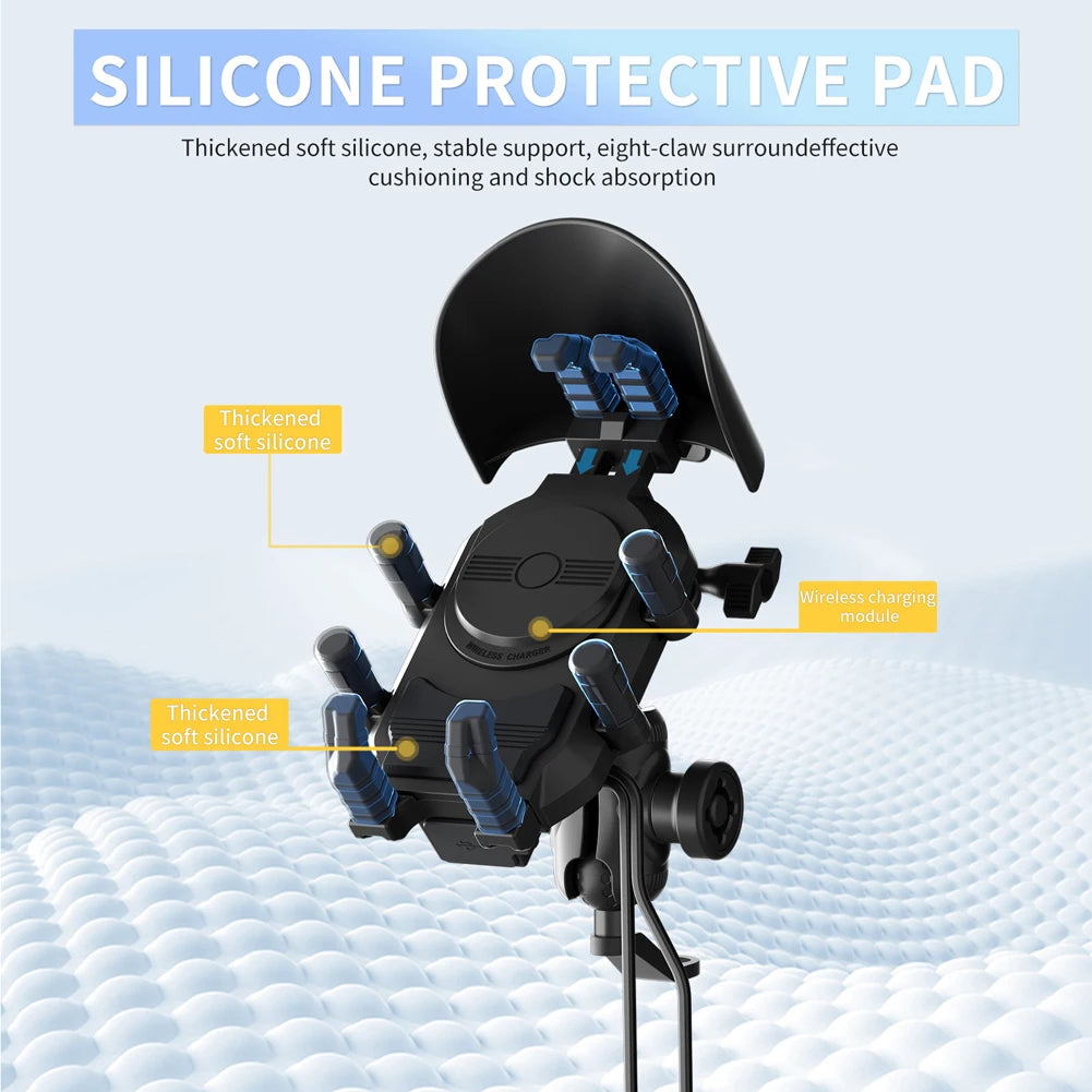 Motorcycle Phone Holder 15W Wireless Charger Shockproof Smartphone Mount Anti-Theft Motorbike Phone Bracket Waterproof