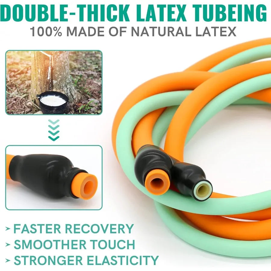 THE LATEST UPGRADED 150LBS RESISTANCE BANDS: Our resistance bands for working out are made of 100% healthy and environmentally friendly natural latex material, which have smoother touch, stronger resistance and better wear resistance! The exercise bands resistance have 5 different strength levels, corresponding to 5 different colors (cyan 10 lbs, blue 20 lbs, red 30 lbs, orange 40 lbs, purple 50 lbs), which can be used alone or stacked in any combination to a maximum equivalent of 150 lbs