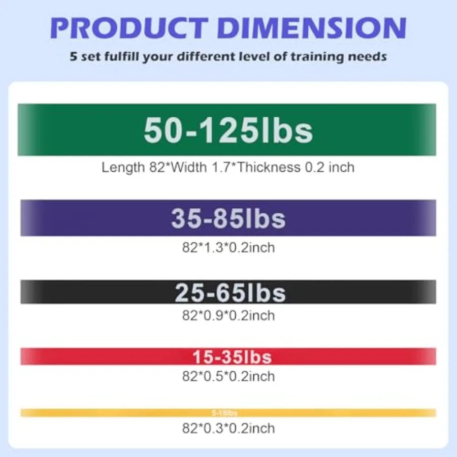 • 【Diverse Resistance Levels】5 resistance levels, each color-coded is different resistance and width, fulfill your different level of training needs,can be used alone or combined multiple workout bands to increase the challenge. Build your ideal body