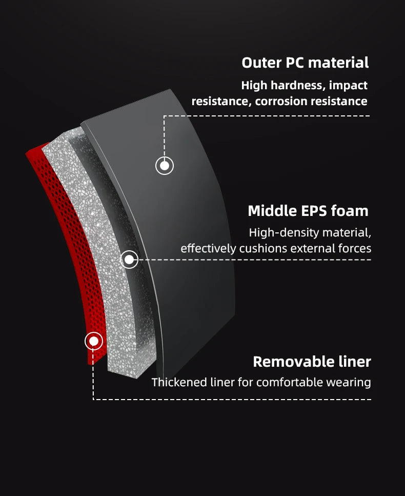 Outside PC shell + Middle EPS foam + Interior removable lining