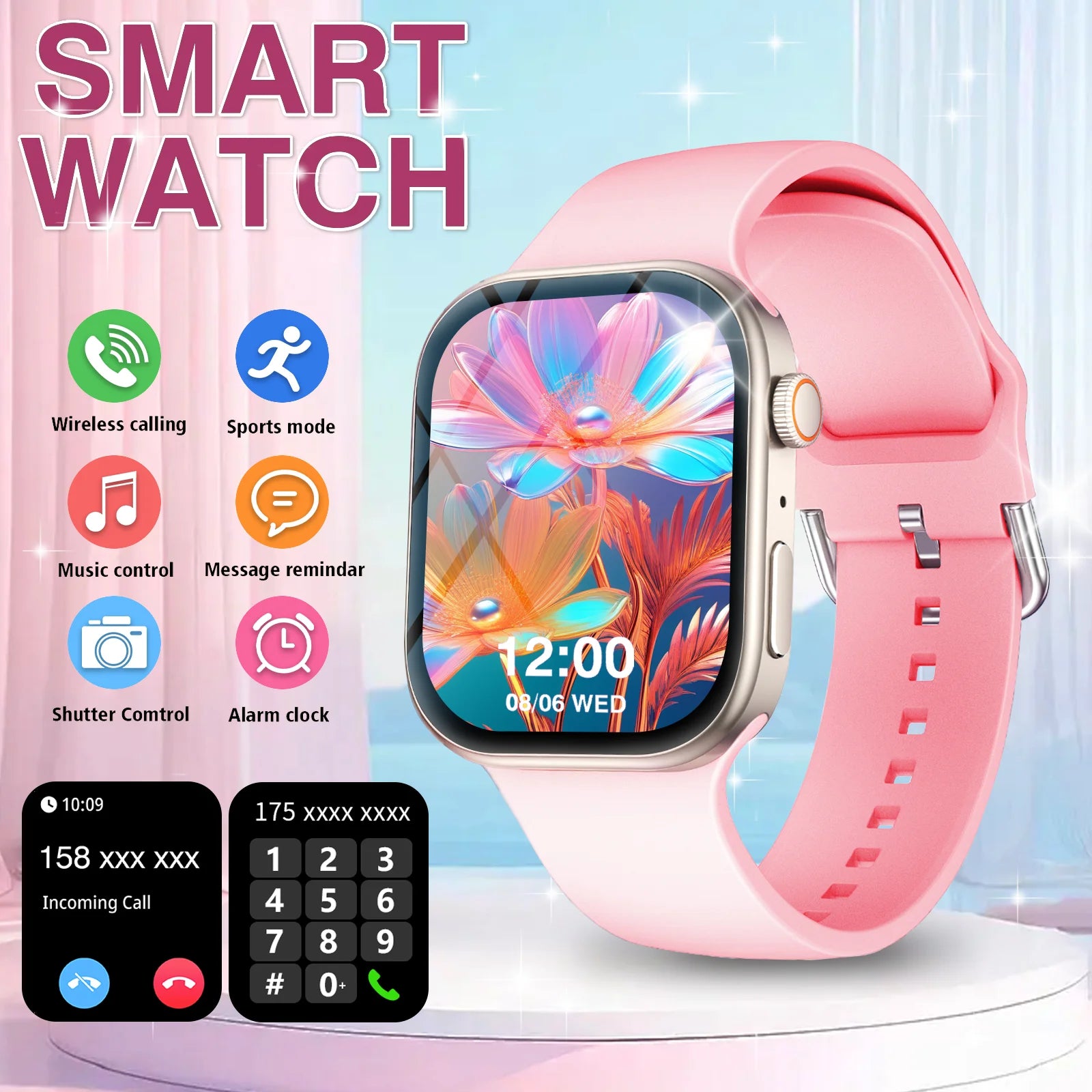 Smart Watch Bluetooth Call Message Display Fitness Monitoring Bracelet Christmas Gift Suitable for Android iPhone