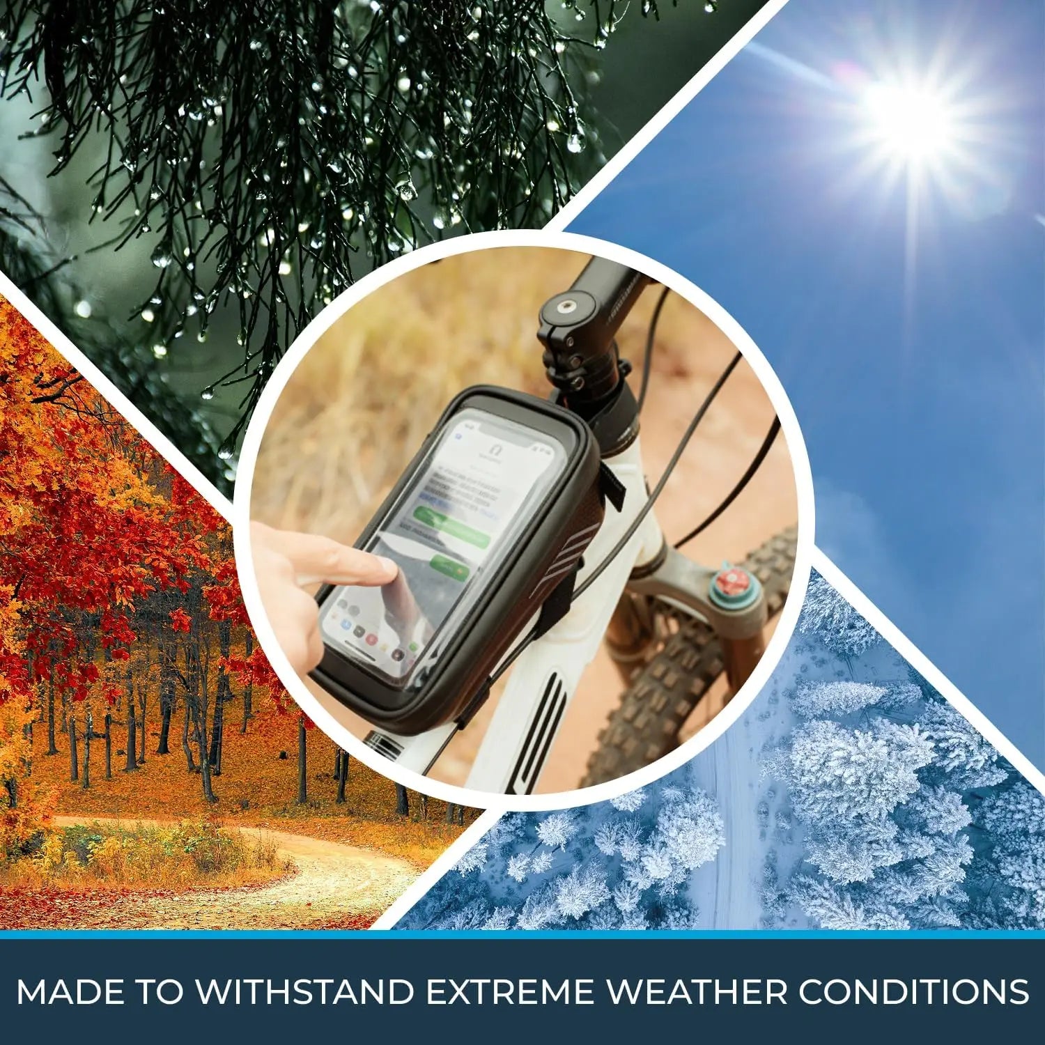 Universal Bike Phone Holder with Waterproof Case - Fits Phones Up to 4' x 7' - Velcro Mount, Full Touchscreen - Black