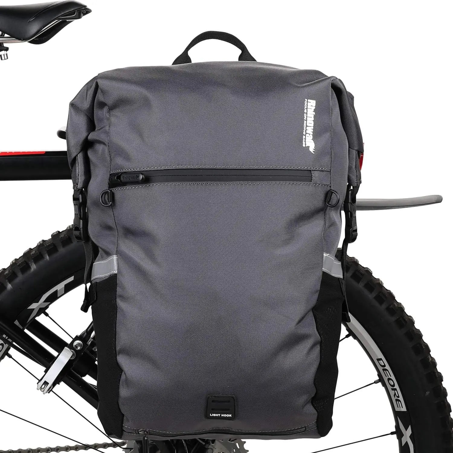Multiple Storage Spaces:The main body of the bicycle bag has a large capacity of 24L, with built-in rich compartments, which can easily store computers, ipads, clothes, shoes and so on. The mesh bags on the left and right sides can hold the kettle. A hidden helmet cover and waterproof cover at the bottom can provide more storage space