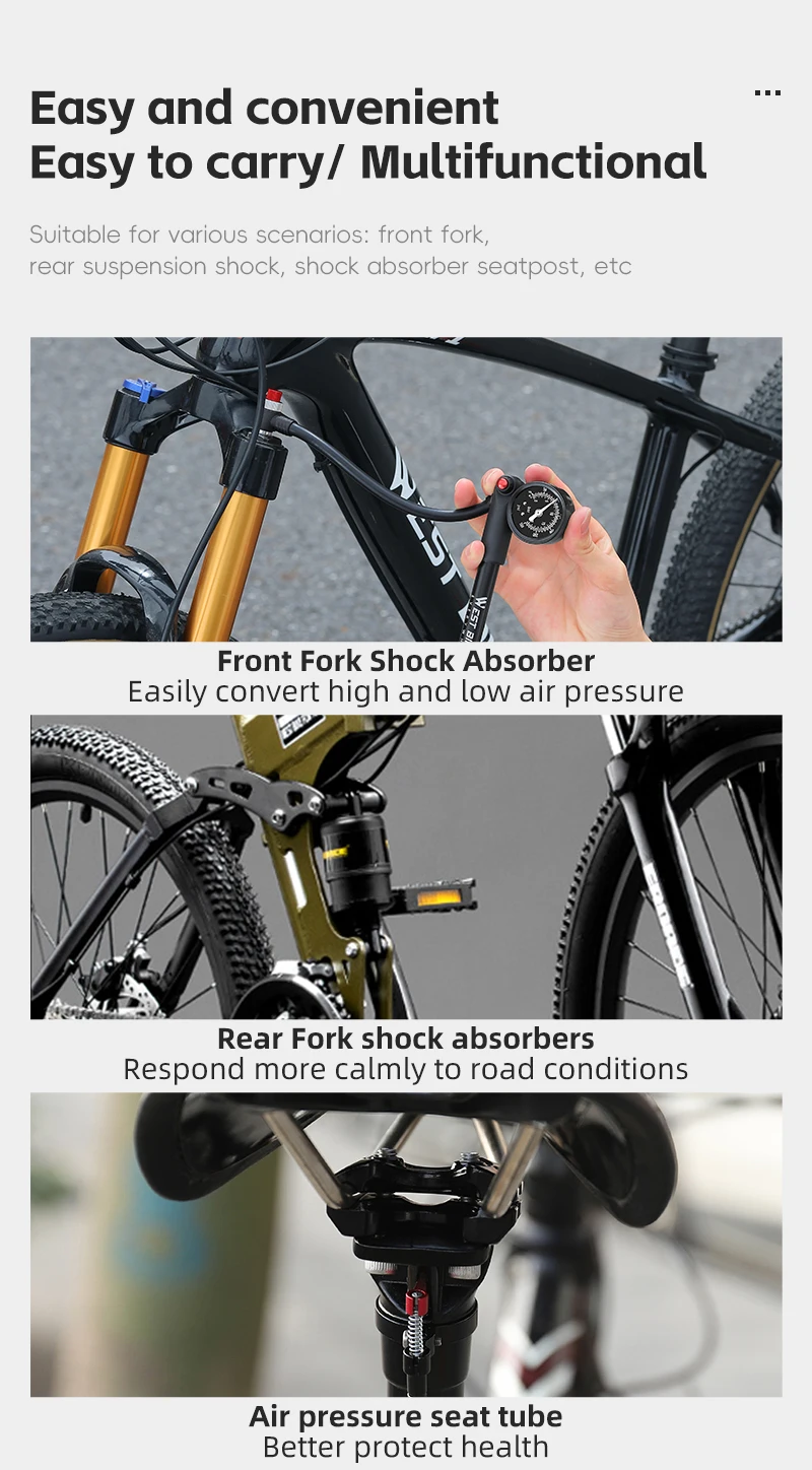 WEST BIKING 400PSI Bicycle Air Pump High Pressure MTB Bicycle Pump Front Fork Rear Suspension Pressure Gauge Schrader Valve