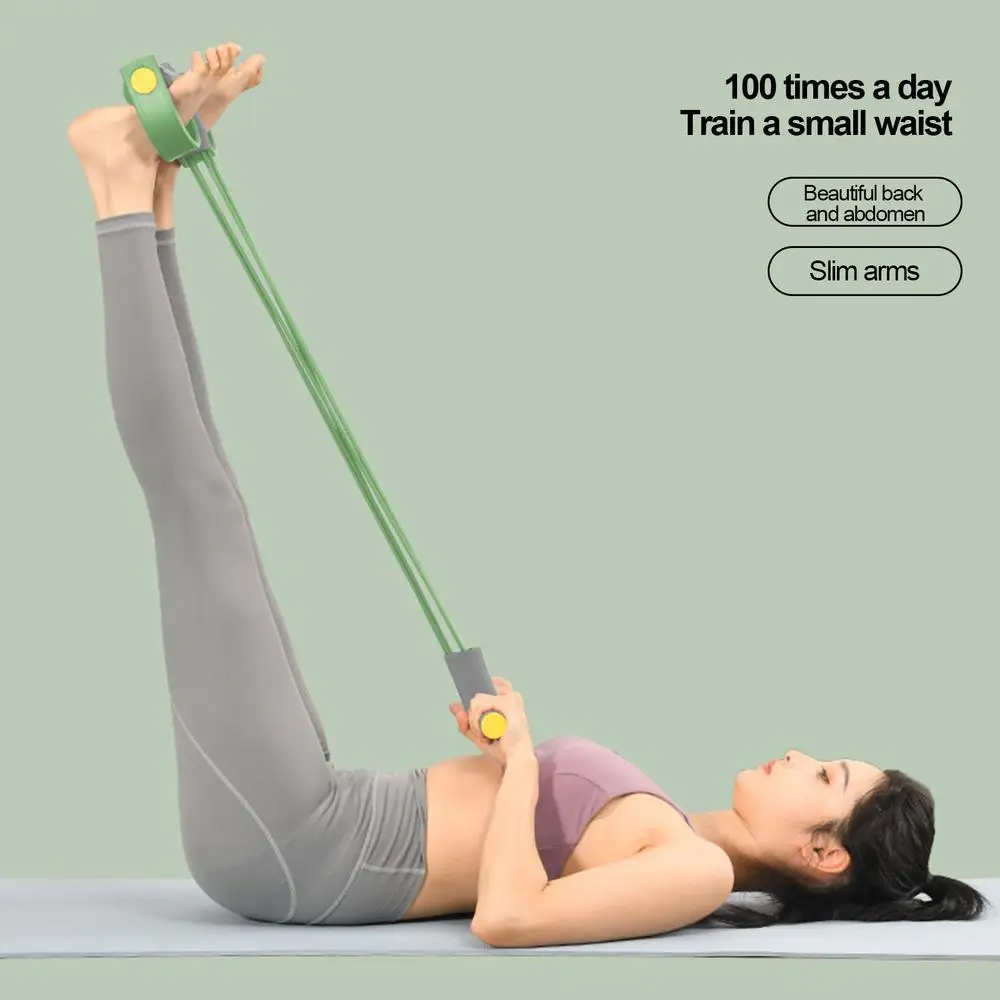 Yoga Pedal Puller Portable Resistance Band 4-Tube Pedal Ankle Puller Abdominal Exerciser Elastic Pedal Booster Body